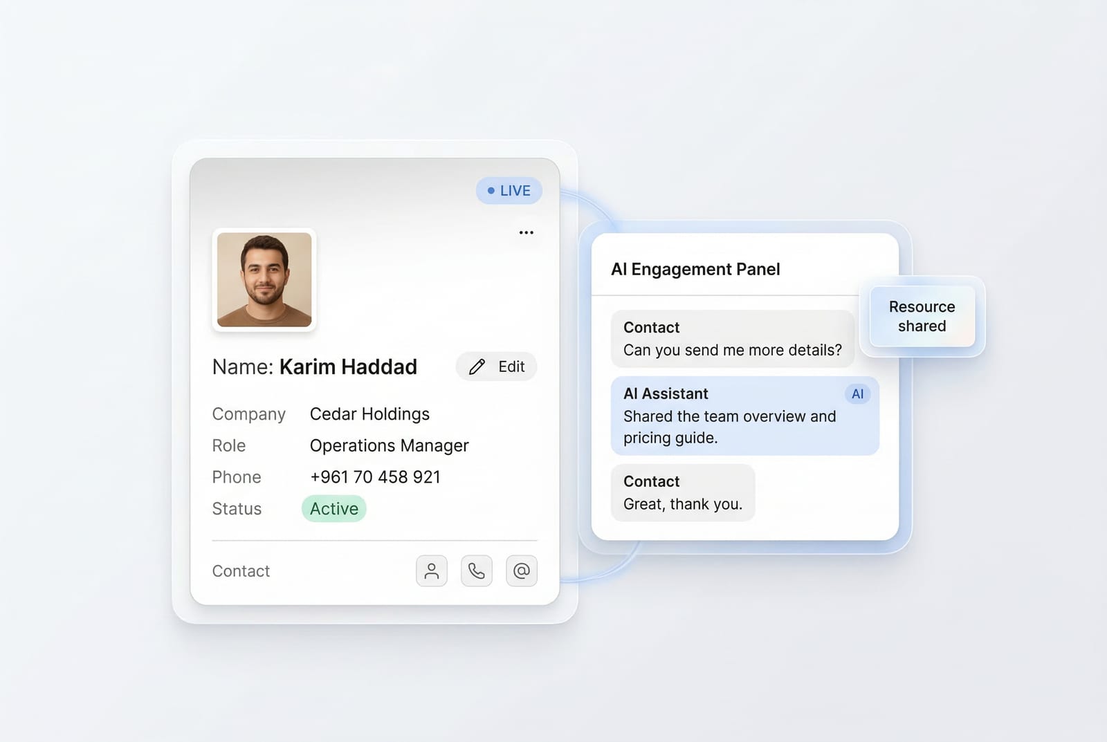 Bl1nk AI enriches contacts, remembers conversations, and helps your team follow up at the right moment, all while keeping your data secure.